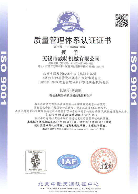 經(jīng)過研發(fā)團(tuán)隊(duì)多年來的努力,多個(gè)產(chǎn)品取得了高新技術(shù)產(chǎn)品榮譽(yù)稱號(hào)。公司研發(fā)團(tuán)隊(duì)人員堅(jiān)持不斷創(chuàng)新,將新技術(shù)運(yùn)用于產(chǎn)品中,現(xiàn)有多個(gè)項(xiàng)目研發(fā)中。 公司視產(chǎn)品質(zhì)量為生命,從原材料開始嚴(yán)格控制質(zhì)量,過程中每一道工序的檢驗(yàn)都有記錄,并通過了ISO9001質(zhì)量體系認(rèn)證,以過硬的質(zhì)量確保出廠的產(chǎn)品... 二十多年來,我們所生產(chǎn)的2000余臺(tái)擠壓機(jī)暢銷國內(nèi)及世界各地,如 法國美泰樂公司、美國UAC公司(波音、空客飛機(jī)主要型材供應(yīng)商)、德國優(yōu)美科、阿聯(lián)酋、巴西、阿根廷、土耳其、越南、墨西哥等。 公司以優(yōu)質(zhì)完善的服務(wù)為客戶的滿意提供了保障,我們將想用戶之想,超用戶之想,不斷提高服務(wù)品質(zhì)。